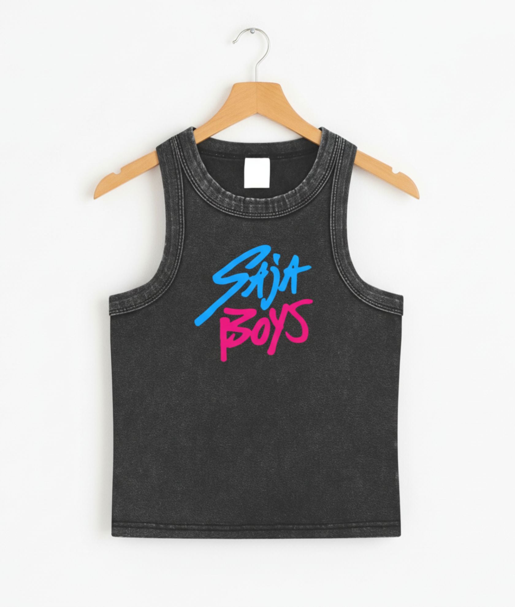 Keep it cool and casual with the Saja Boys Tank Top, available in classic white or vintage black. Made with soft cotton and finished with high-quality direct-to-garment printing, this tank keeps the bold Saja Boys logo crisp and vibrant. Designed with a modern cut and comfortable bodycon fit, it’s perfect for layering, workouts, or hot nights. This tank is a must-have wardrobe staple for fans looking to bring the Saja Boys energy into their everyday style.